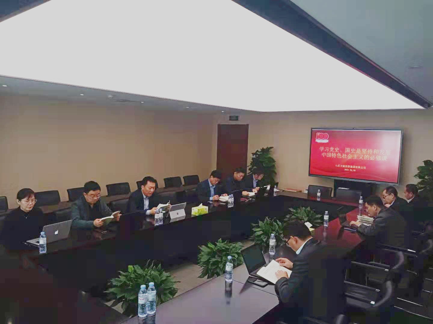 近日,山東文旅投資集團(tuán)有限公司(以下簡稱“公司”)召開黨委理論中心組(擴(kuò)大)學(xué)習(xí)會議,集體學(xué)習(xí)了習(xí)近平總書記《論中國共產(chǎn)黨歷史》一書的“學(xué)習(xí)黨史、國史是堅(jiān)持和發(fā)展中國特色社會主義的必修課”篇目。公司黨委書記、董事長王化龍領(lǐng)學(xué),并帶頭講學(xué)習(xí)心得體會。黨委成員和經(jīng)營班子成員參加集體學(xué)習(xí),并圍繞黨史學(xué)習(xí)教育進(jìn)行發(fā)言。