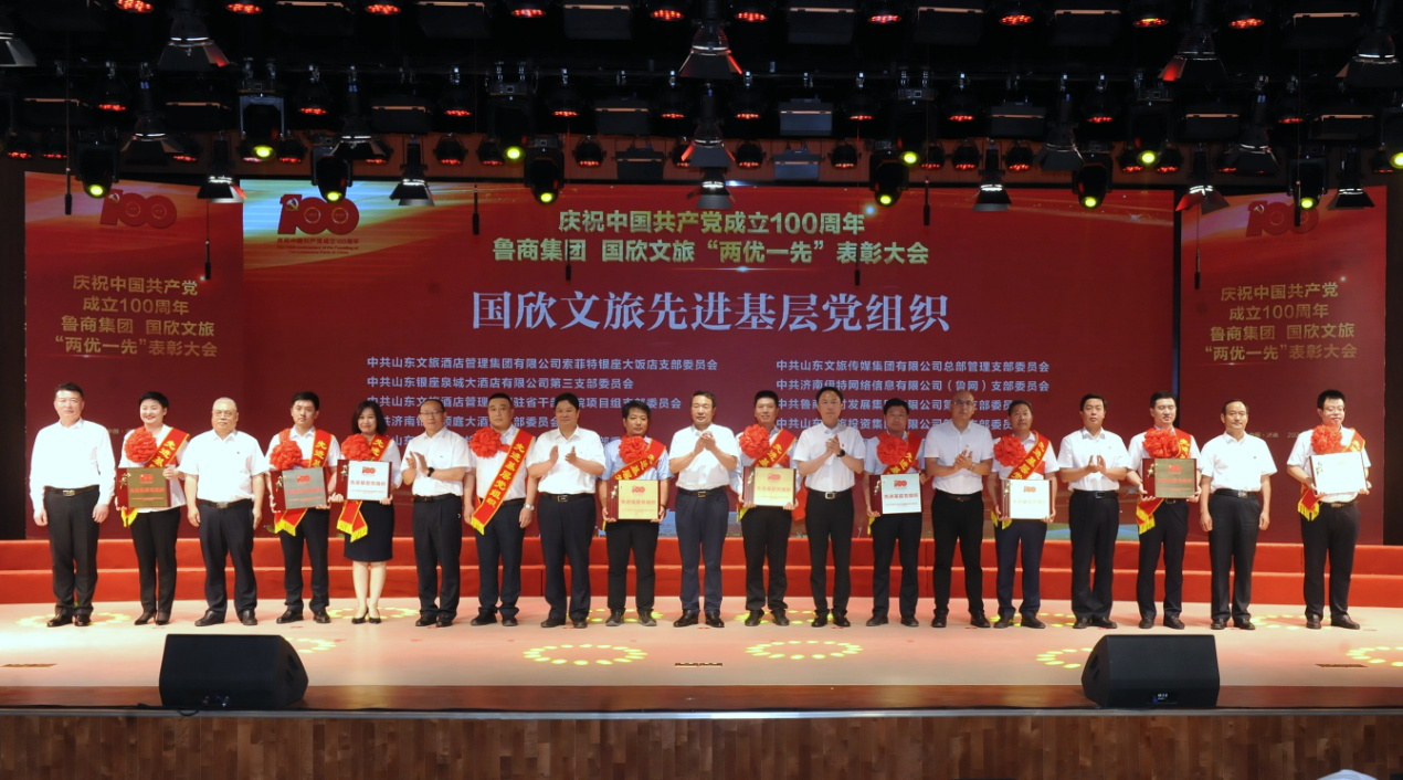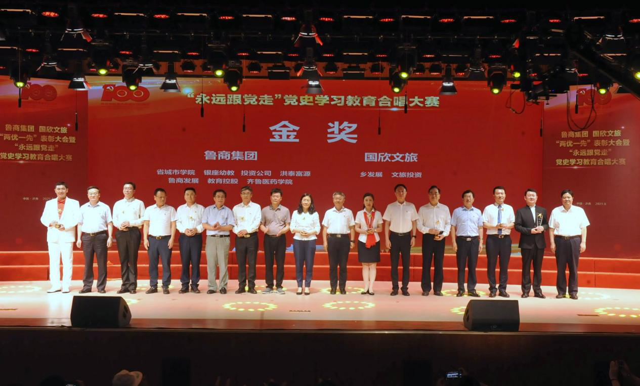 為慶祝中國共產(chǎn)黨成立100周年,6月23日,國欣文旅舉行 “兩優(yōu)一先”表彰大會暨“永遠(yuǎn)跟黨走”黨史學(xué)習(xí)教育合唱總決賽。魯商集團(tuán)黨委書記、董事長兼國欣文旅黨委書記、董事長高洪雷出席活動并講話。