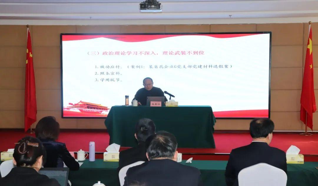 王振江同志通報了近年來國資國企系統(tǒng)和集團(tuán)黨風(fēng)廉政建設(shè)和反腐敗工作基本情況,分析了新時代黨風(fēng)廉政建設(shè)面臨的形勢任務(wù)和要求,并結(jié)合企業(yè)實際,以“扣好廉潔從業(yè)第一??圩印睘橹黝},運用大量典型事例,深刻剖析了國有企業(yè)年輕干部違紀(jì)違法案件特征及成因,從組織和個人兩個層面,對加強(qiáng)年輕干部教育監(jiān)督管理提出了七個方面具體要求,引導(dǎo)年輕干部堅定理想信念,正確對待權(quán)力,時刻自重自省,守牢廉潔從業(yè)底線,能干事、想干事、干成事、不出事。