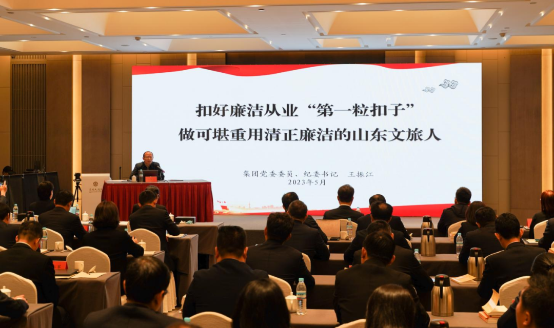 為深入開(kāi)展學(xué)習(xí)貫徹習(xí)近平新時(shí)代中國(guó)特色社會(huì)主義思想主題教育,推進(jìn)集團(tuán)全面從嚴(yán)治黨向縱深發(fā)展,提高黨員干部廉潔自律意識(shí),筑牢拒腐防變思想防線,5月5日,山東文旅集團(tuán)黨委委員、紀(jì)委書(shū)記王振江到山東文旅酒店集團(tuán)講授廉潔黨課。