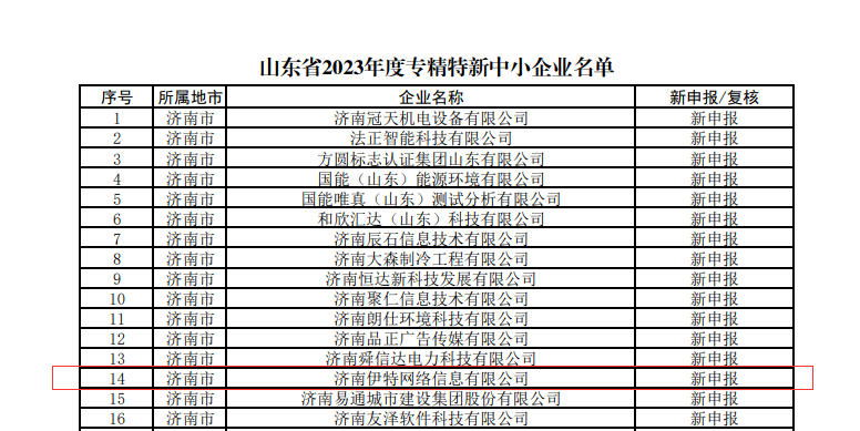 5月10日,山東省工業(yè)和信息化廳公布山東省2023年度專精特新中小企業(yè)名單,經(jīng)過層層嚴(yán)格遴選,山東文旅傳媒集團(tuán)旗下濟(jì)南伊特網(wǎng)絡(luò)信息有限公司(魯網(wǎng))成功被認(rèn)定為山東省專精特新中小企業(yè)。