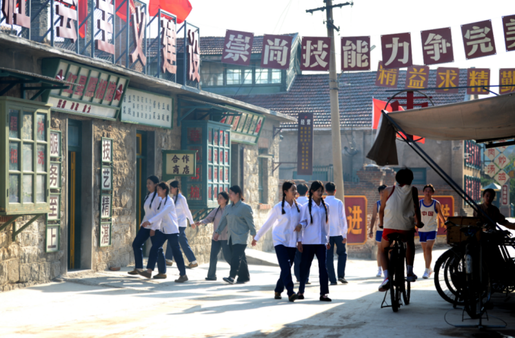 園區(qū)內(nèi),光影交織的懷舊主題商業(yè)街復(fù)刻了老街巷、報(bào)亭、食堂和商鋪等場(chǎng)景,營(yíng)造出濃厚的懷舊氛圍。游客可以在勝利供銷社體驗(yàn)使用“糧票”換購(gòu)懷舊商品的樂(lè)趣,或在紅星照相館租賃特色年代服飾拍攝主題照片,化身時(shí)代主角。經(jīng)典的“二八大杠”自行車也供游客租賃騎行穿梭其間。