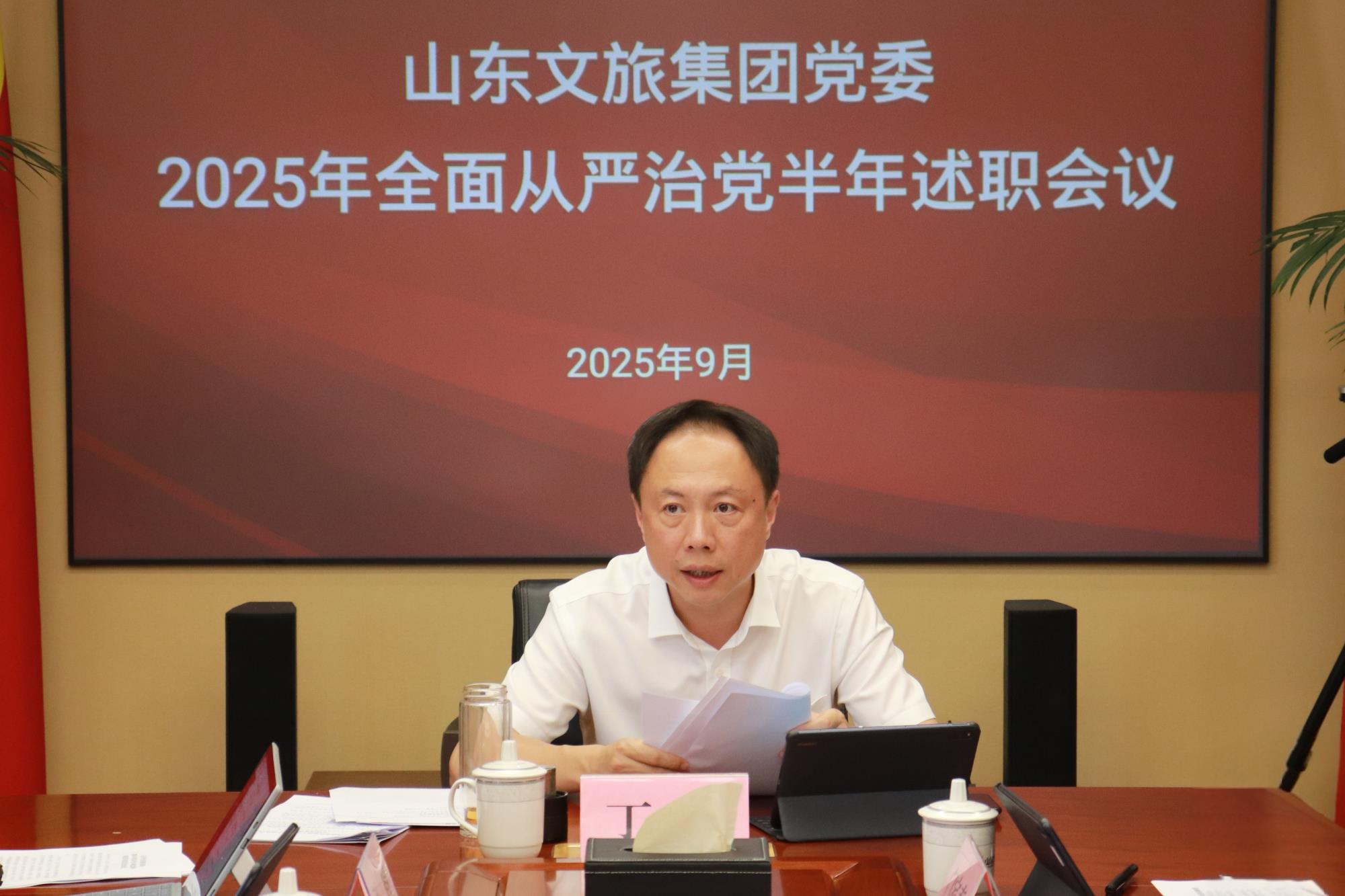 9月12日,山東文旅集團召開2025年上半年全面從嚴治黨會議。集團黨委書記、董事長丁藝主持會議并講話。