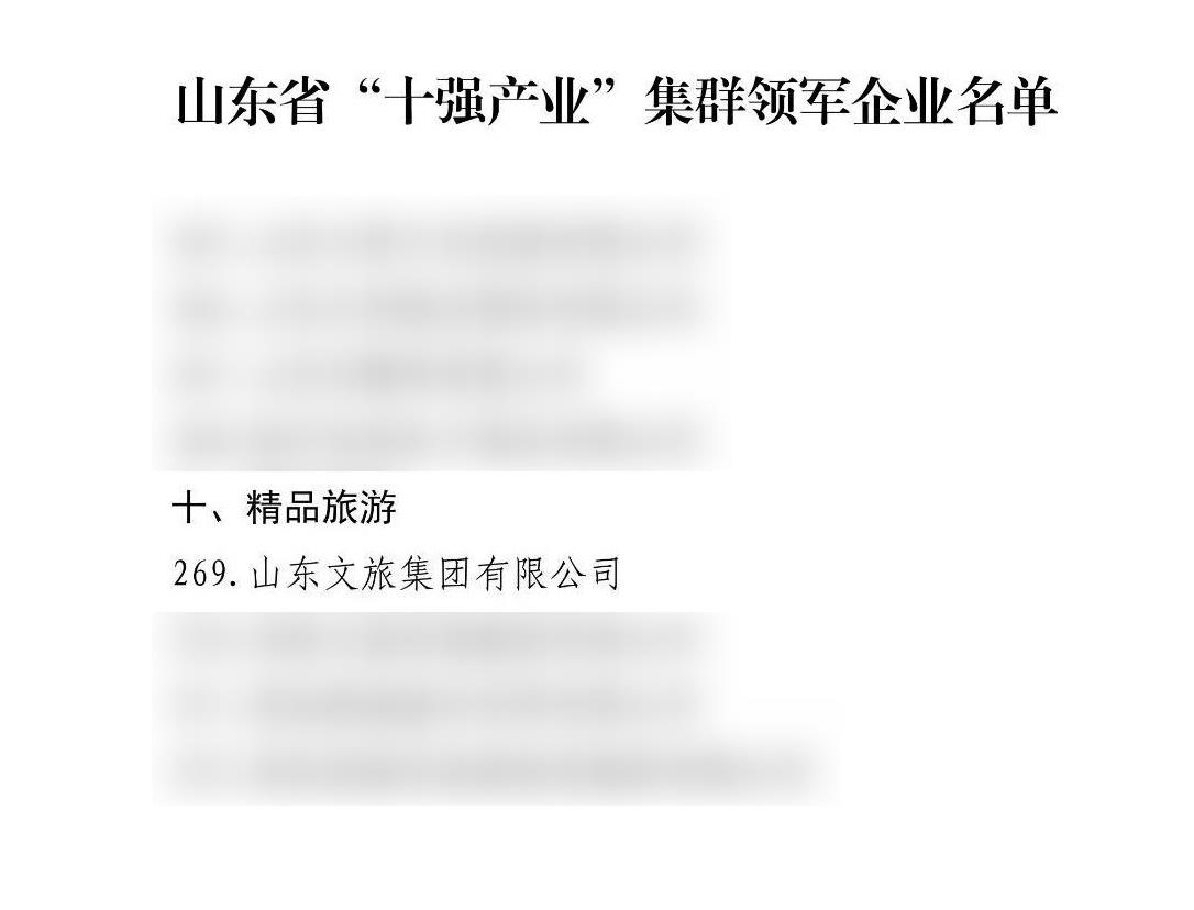 近日,山東省發(fā)展和改革委員會(huì)印發(fā)了“十強(qiáng)產(chǎn)業(yè)”雁陣形產(chǎn)業(yè)集群儲(chǔ)備庫及集群領(lǐng)軍企業(yè)名單,山東文旅集團(tuán)成功入選精品旅游產(chǎn)業(yè)集群領(lǐng)軍企業(yè)。