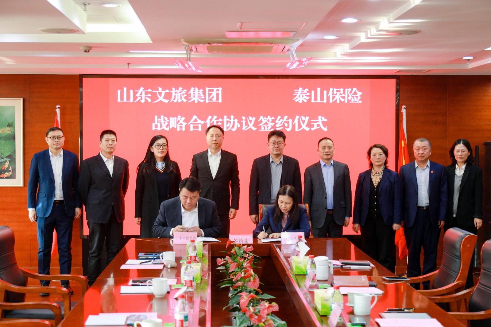 12月23日,山東文旅集團(tuán)與泰山保險(xiǎn)在濟(jì)南簽署戰(zhàn)略合作協(xié)議。泰山保險(xiǎn)黨委書(shū)記、董事長(zhǎng)安中濤,山東文旅集團(tuán)黨委書(shū)記、董事長(zhǎng)丁藝出席簽約儀式并講話。泰山保險(xiǎn)總經(jīng)理毛明光出席簽約儀式。