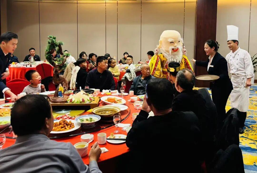 菏澤頤庭華美達(dá)酒店則將大宴會廳升級為“跨年樂園”,飄香的特色美食與工作人員扮演的萌趣玩偶互動相映成趣,讓歡樂氛圍充盈整個空間。