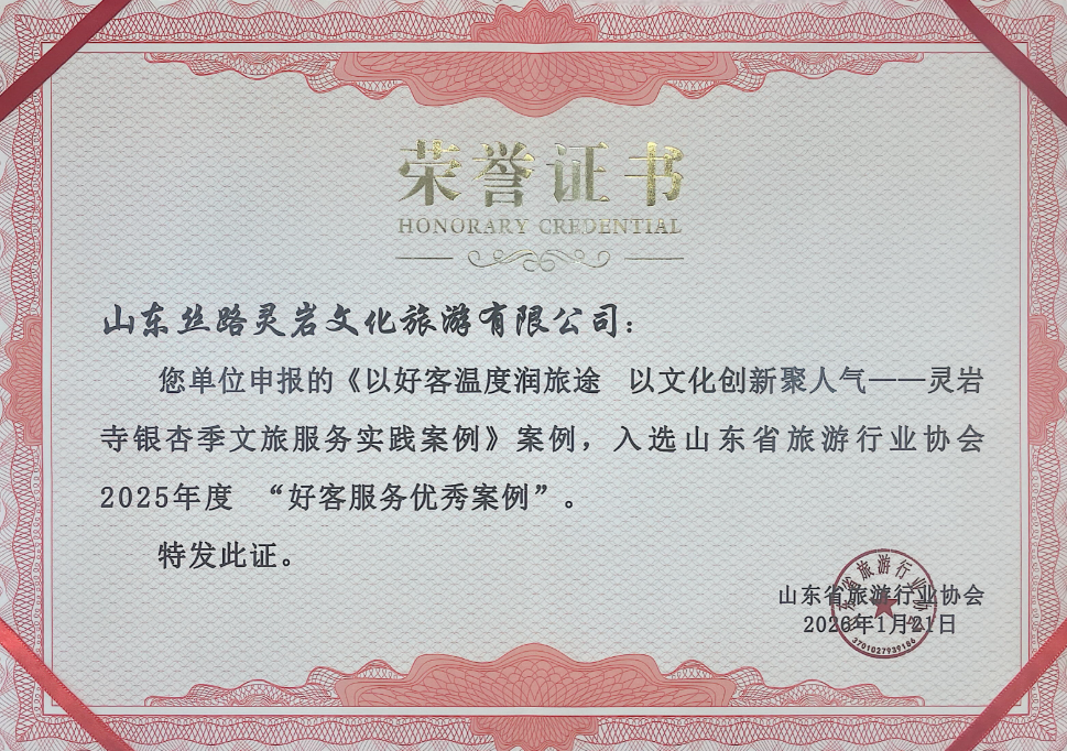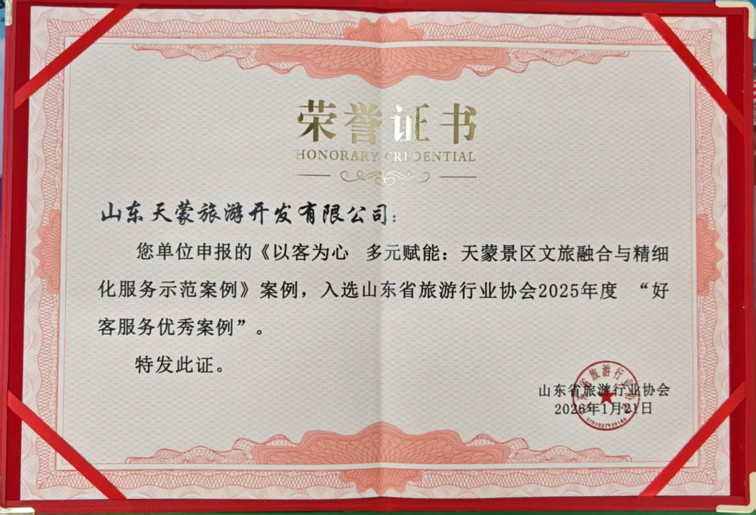 近日,在山東省旅游行業(yè)協(xié)會六屆二次會員代表大會暨2026年年會上,山東文旅景區(qū)集團旗下天蒙景區(qū)、靈巖勝境旅游區(qū)憑借其在文旅消費創(chuàng)新與卓越服務實踐中的突出成果,成功入選山東省旅游行業(yè)協(xié)會2025年度“好客服務優(yōu)秀案例”。這一榮譽不僅是對集團景區(qū)團隊專業(yè)能力的肯定,更是對集團深度踐行“好客山東”服務標準、積極探索文旅高質量發(fā)展路徑的權威認可。