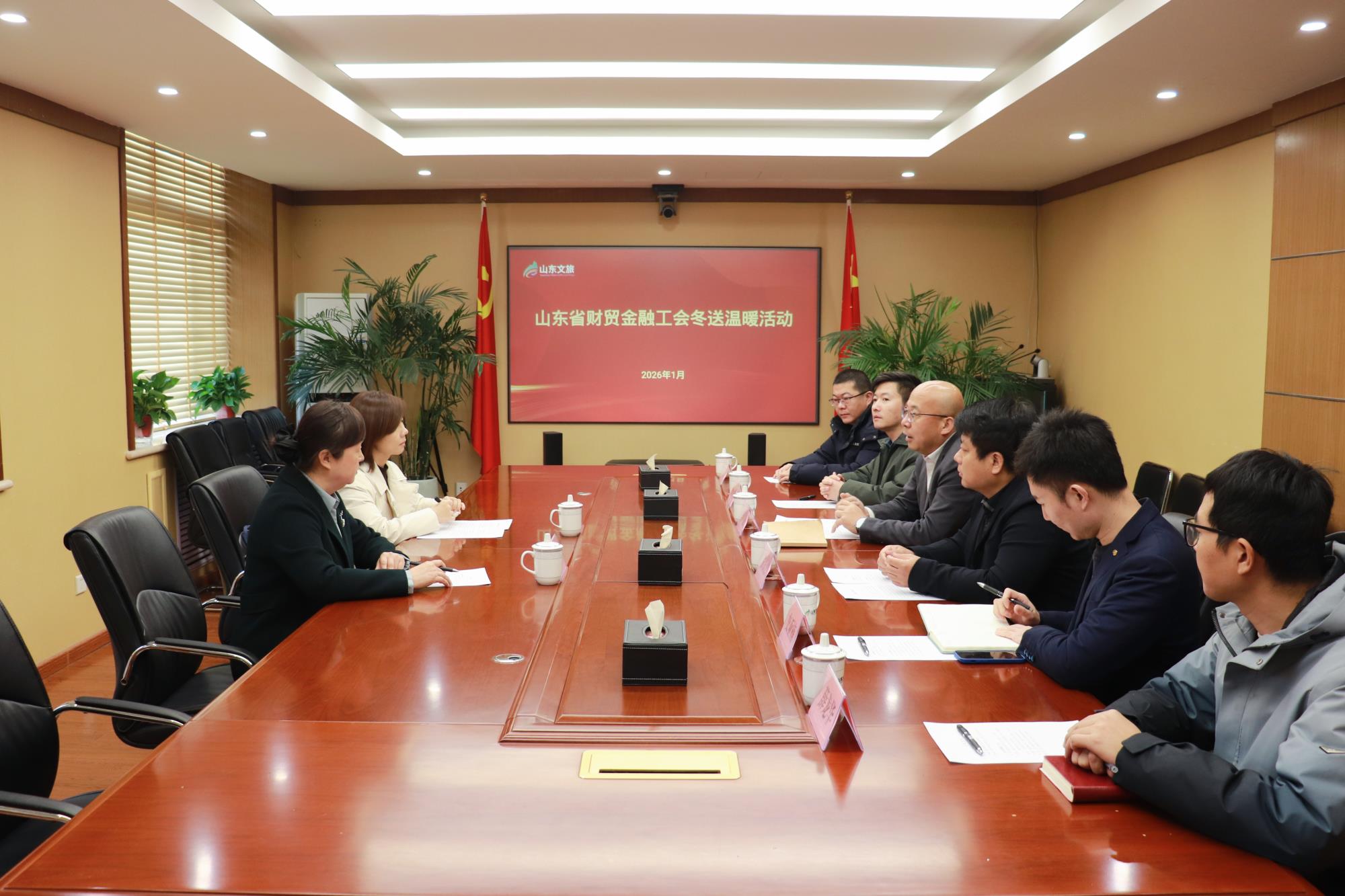 1月28日,山東省財貿(mào)金融工會三級調(diào)研員辛瑋靜,省財貿(mào)金融工會副主席、省總工會機關(guān)工會主席張學超一行到山東文旅集團開展冬送溫暖活動,走訪慰問困難職工、一線職工并座談交流。山東文旅集團黨委副書記、職工董事、工會主席孫超參加慰問。