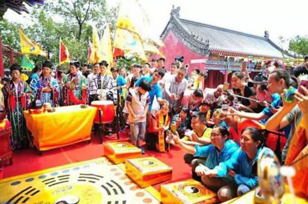 在民間,村民在村外路口處搭棚、設(shè)供桌,敬天祭神。焚紙帛,誦祭文,祈愿豐收,參加祭祀的人們把整豬、全羊、雞、魚(yú)、豆腐、水果、點(diǎn)心等祭祀用品擺在供桌上,給神靈上香磕頭,感謝大山帶來(lái)的恩惠,祈求今年五谷豐登,禽畜興旺。