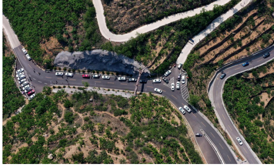 道朗鎮(zhèn)里峪村通往八樓、東西門村的盤山路上車輛絡(luò)繹不絕,去年剛剛修建的盤山公路成了不少游客自駕游的不二之選,蜿蜒曲折的盤山路不僅能讓游客一覽沿途壯美風(fēng)景,更是體驗(yàn)了一把賽車手的駕馭之感。