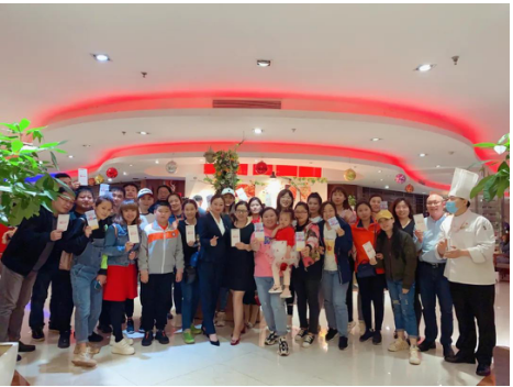 上善坊主管吳永菲得知三家醫(yī)院工作人員將前往佳悅酒店就餐后,緊急組織服務(wù)人員準(zhǔn)備互動(dòng)節(jié)目致敬白衣天使。白醫(yī)生稱,“進(jìn)店之后感受到了酒店工作人員的熱情服務(wù),心里暖暖的”。