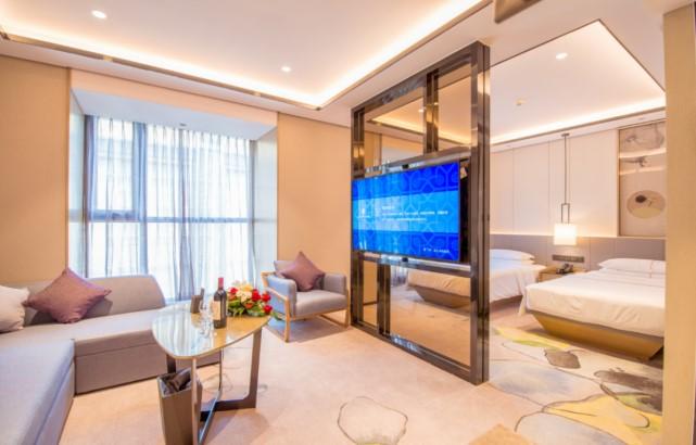 新客房突出了泉水文化元素,房間門牌、床頭裝飾畫的泉水、荷花元素處處彰顯靈動。傳統(tǒng)與現(xiàn)代元素交互,盡顯典雅、輕奢、時尚的風格,結(jié)合全新科技,將人臉識別、語音控制、智能感應融入其中,為賓客提供高端、舒適、智能、高效的入住體驗。