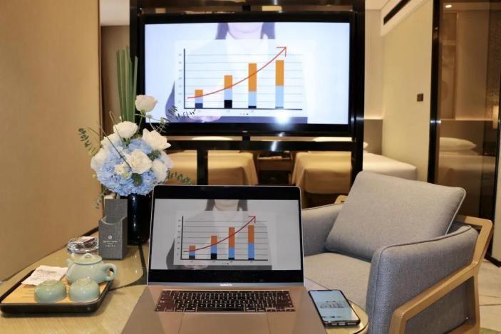 當我們走進泉城大酒店大堂的那一刻起,智慧酒店就已經(jīng)上線了:自助登記機辦理入住僅需30秒,退房只需10秒,同時支持在線選房;通過面容識別自動開啟房門,專屬智能語音助手為房間設備進行操控;功能體驗齊全,支持視頻客戶端、手機設備屏幕鏡像投、電腦投屏,無論是休閑娛樂還是商務辦公,都能為顧客提供更好體驗。