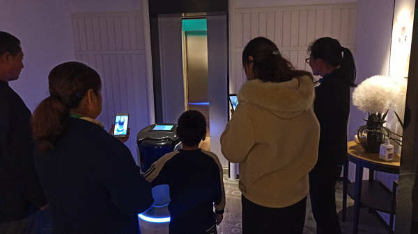 活動(dòng)中,店長(zhǎng)帶領(lǐng)父母?jìng)儏⒂^酒店,了解員工拼搏奮戰(zhàn)的地方,展示公司產(chǎn)品升級(jí)換代的新成果和廣闊的發(fā)展前景。在酒店智能客房中,店長(zhǎng)耐心介紹著智能客控設(shè)備的便捷操作。機(jī)器人服務(wù)員的“聰明、貼心”立刻吸引了大家的眼球,大家紛紛拿出手機(jī)拍照錄像,現(xiàn)場(chǎng)響起一片贊嘆聲。