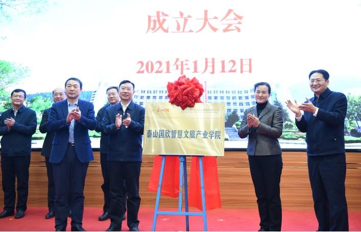 1月12日上午,山東省國(guó)欣文化旅游發(fā)展集團(tuán)有限公司(簡(jiǎn)稱“國(guó)欣文旅”)與泰山學(xué)院共建共管共享的“泰山國(guó)欣智慧文旅產(chǎn)業(yè)學(xué)院”成立大會(huì)在泰山學(xué)院隆重舉行,這是全國(guó)首家以智慧文旅為方向的現(xiàn)代產(chǎn)業(yè)學(xué)院。魯商集團(tuán)黨委書記、董事長(zhǎng)兼國(guó)欣文旅黨委書記、董事長(zhǎng)高洪雷,泰安市委副書記、市長(zhǎng)張濤,泰山學(xué)院黨委書記范真,省文旅廳黨組成員、副廳長(zhǎng)張?chǎng)H等領(lǐng)導(dǎo)出席活動(dòng)并揭牌。
