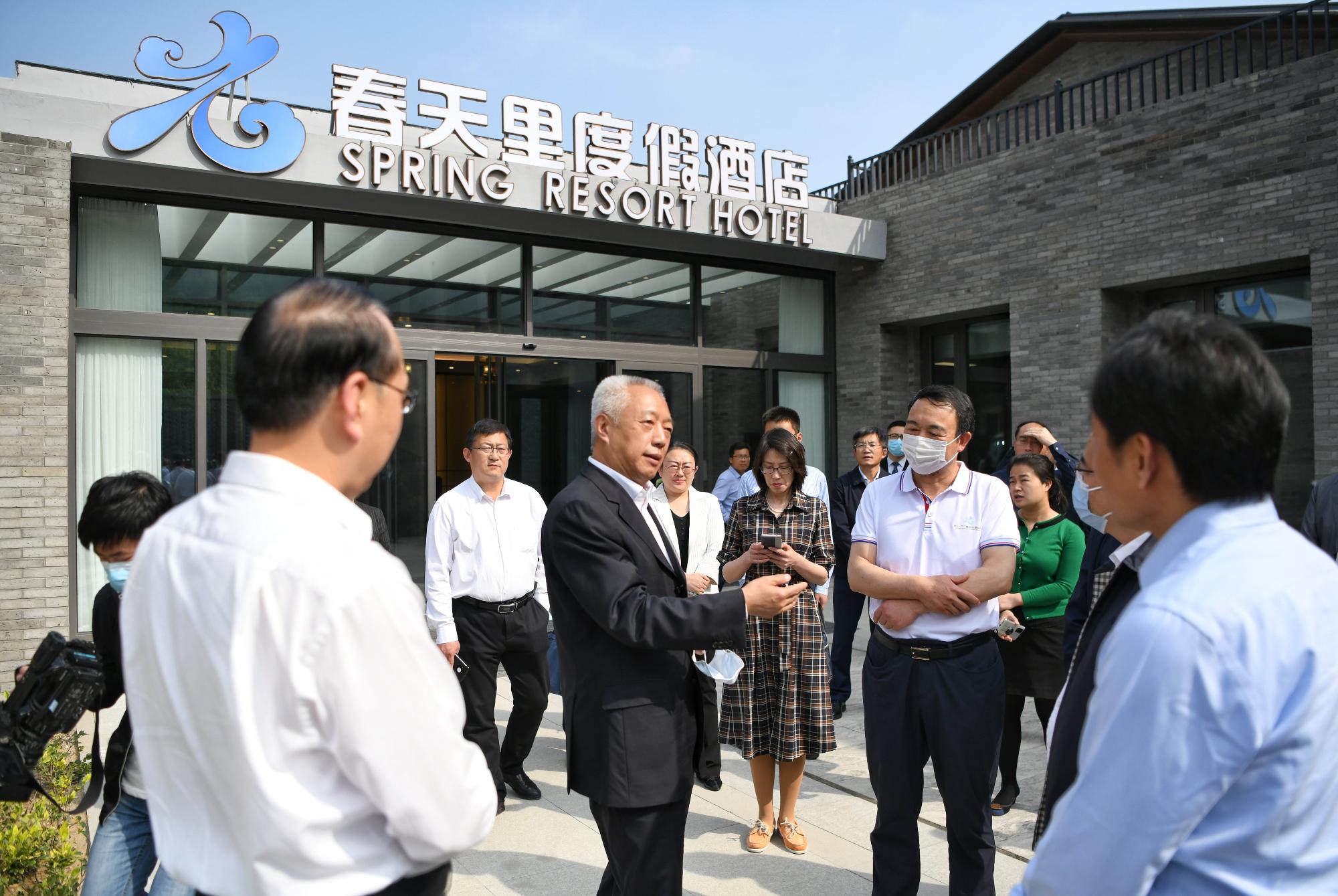 5月11日,中國(guó)科協(xié)副主席、書(shū)記處書(shū)記孟慶海帶隊(duì)到泰山九女峰鄉(xiāng)村振興項(xiàng)目考察。副省長(zhǎng)凌文陪同調(diào)研。