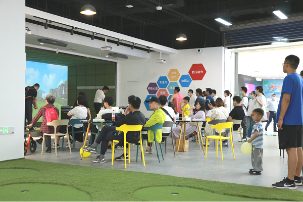 五峰山公司自2020年底起著手?jǐn)U大濟(jì)南東部高爾夫市場布局,面向濟(jì)南市建立高爾夫青少年培訓(xùn)旗艦店,同時(shí)進(jìn)行崮云湖高爾夫球場業(yè)態(tài)展示及模擬器產(chǎn)品展銷。經(jīng)過近半年的緊張籌措,山東文旅崮云湖高爾夫體驗(yàn)中心最終落戶濟(jì)南融創(chuàng)文旅城。為保障首日試運(yùn)營順利,五峰山公司提前對服務(wù)人員進(jìn)行了為期半月的崗前特訓(xùn),模擬接待指引、體驗(yàn)教學(xué)等基本工作。伴隨濟(jì)南融創(chuàng)文旅城開業(yè),游客紛紛涌入各大主題館內(nèi)參觀消費(fèi),作為融創(chuàng)茂體育世界館內(nèi)最具特色的體驗(yàn)中心之一,山東文旅崮云湖高爾夫體驗(yàn)中心迅速吸引了大量游客的視線,其中不乏青少年體驗(yàn)者。體驗(yàn)中心設(shè)置的9臺(tái)高爾夫模擬器最大限度還原了球場實(shí)景,輔以自然音效,為游客帶來了最真實(shí)、優(yōu)質(zhì)的體驗(yàn)感。