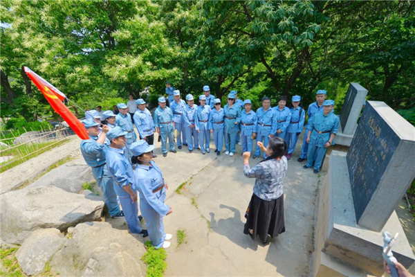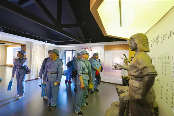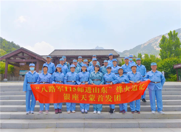 首發(fā)團(tuán)先來到大青山勝利突圍紀(jì)念館,重溫入黨誓詞,重走大青山突圍路,感受革命艱辛歷程。之后赴沂蒙山銀座天蒙旅游區(qū),著八路軍服裝,吃憶苦思甜飯,參觀沂蒙山小調(diào)活態(tài)博物館,學(xué)唱《沂蒙山小調(diào)》歌曲,體驗八路軍滿缸運動、匍匐前進(jìn)、獨木橋、小推車等。銀座旅行社精心安排專業(yè)導(dǎo)游在每個景點為大家詳細(xì)講述相關(guān)歷史和革命故事,帶領(lǐng)大家重溫老一輩革命先烈的光榮事跡。