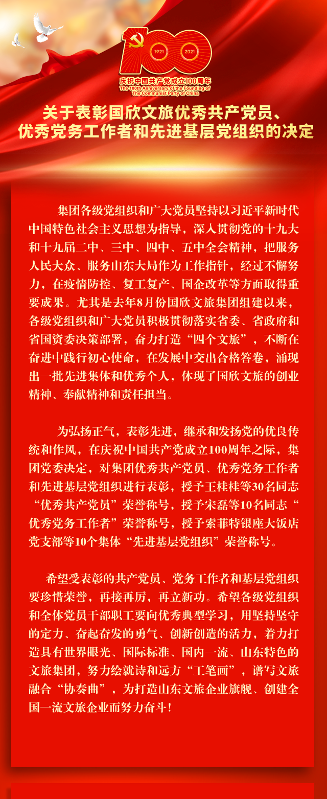 關(guān)于表彰國欣文旅優(yōu)秀共產(chǎn)黨員、優(yōu)秀黨務(wù)工作者和先進(jìn)基層黨組織的決定