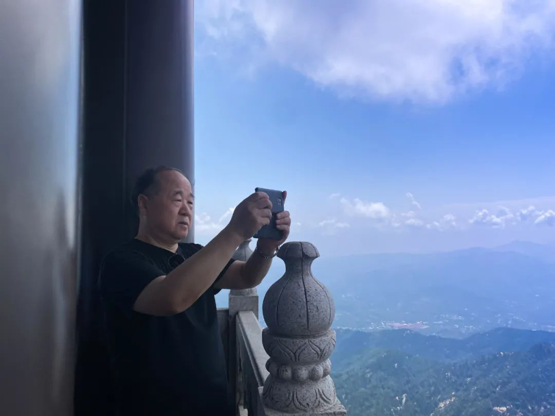 8月6日,諾貝爾文學(xué)獎得主、著名作家莫言到天蒙山景區(qū)參觀考察,品小調(diào)、游沂蒙、觀山水。