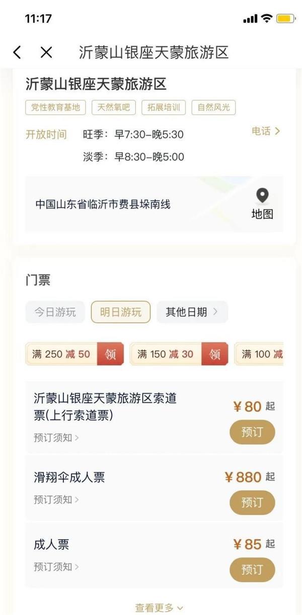 以銀座天蒙山景區(qū)為例,點(diǎn)擊進(jìn)入購(gòu)票頁(yè)面選擇門票并點(diǎn)擊預(yù)訂,就能使用剛才領(lǐng)取的優(yōu)惠券。