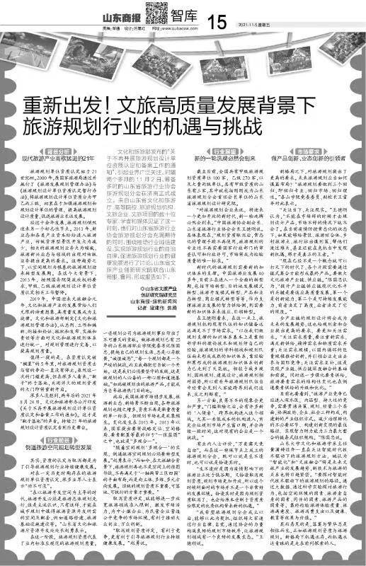 11月4日,山東省文旅產(chǎn)業(yè)創(chuàng)新研究院聯(lián)合山東商報(bào)、魯網(wǎng)發(fā)布題為“文旅高質(zhì)量發(fā)展背景下旅游規(guī)劃行業(yè)的機(jī)遇與挑戰(zhàn)”的專項(xiàng)報(bào)告(簡(jiǎn)稱“報(bào)告”),復(fù)盤旅游規(guī)劃設(shè)計(jì)單位資質(zhì)認(rèn)定和備案新規(guī)背景下的山東實(shí)踐。