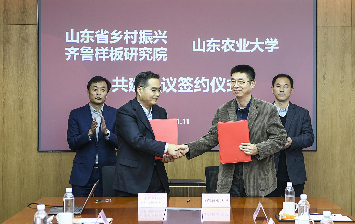 11月18日,山東農(nóng)業(yè)大學(xué)(簡稱“山農(nóng)大”)與山東省鄉(xiāng)村振興齊魯樣板研究院(簡稱“齊魯樣板研究院”)大學(xué)生思想政治教育實(shí)踐基地簽約暨揭牌儀式,在位于泰山·九女峰鄉(xiāng)村振興項(xiàng)目的齊魯樣板研究院舉行。山農(nóng)大黨委常委、副校長辛杰,資源與環(huán)境學(xué)院(簡稱“資環(huán)學(xué)院”)黨委書記馮國營,魯商鄉(xiāng)村發(fā)展集團(tuán)有限公司(簡稱“鄉(xiāng)發(fā)展集團(tuán)”)黨委書記、董事長張建峰參加活動(dòng)。