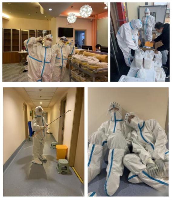 山東文旅酒店集團(tuán)現(xiàn)有92家門店被征用為集中隔離酒店,在征用期間,門店工作人員主動(dòng)報(bào)名疫情防控志愿者,奮戰(zhàn)在抗疫一線,為酒店隔離人員配餐、送餐、消毒、記錄。每天早上6點(diǎn),他們穿上防護(hù)服開始一天的工作,直到晚上才能休息。面對(duì)高強(qiáng)度工作,他們的衣服都是濕透的,手也是顫抖著的,從來(lái)沒(méi)有一句抱怨。這些志愿者中有不少都是鏗鏘玫瑰,用自己?jiǎn)伪〉纳碥|撐起了隔離點(diǎn)的一片天。他們說(shuō)的最多的話是:“能做一名抗疫志愿者,我們覺(jué)得很光榮,這是一件讓人生變得更有意義的事”。