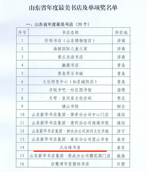 近日,山東省委宣傳部公示2022年度山東省年度最美書店及單項(xiàng)獎(jiǎng)名單,九女峰書房獲評(píng)山東省年度最美書店。此次評(píng)選活動(dòng)旨在進(jìn)一步促進(jìn)實(shí)體書店發(fā)展,提升實(shí)體書店品牌影響力。
