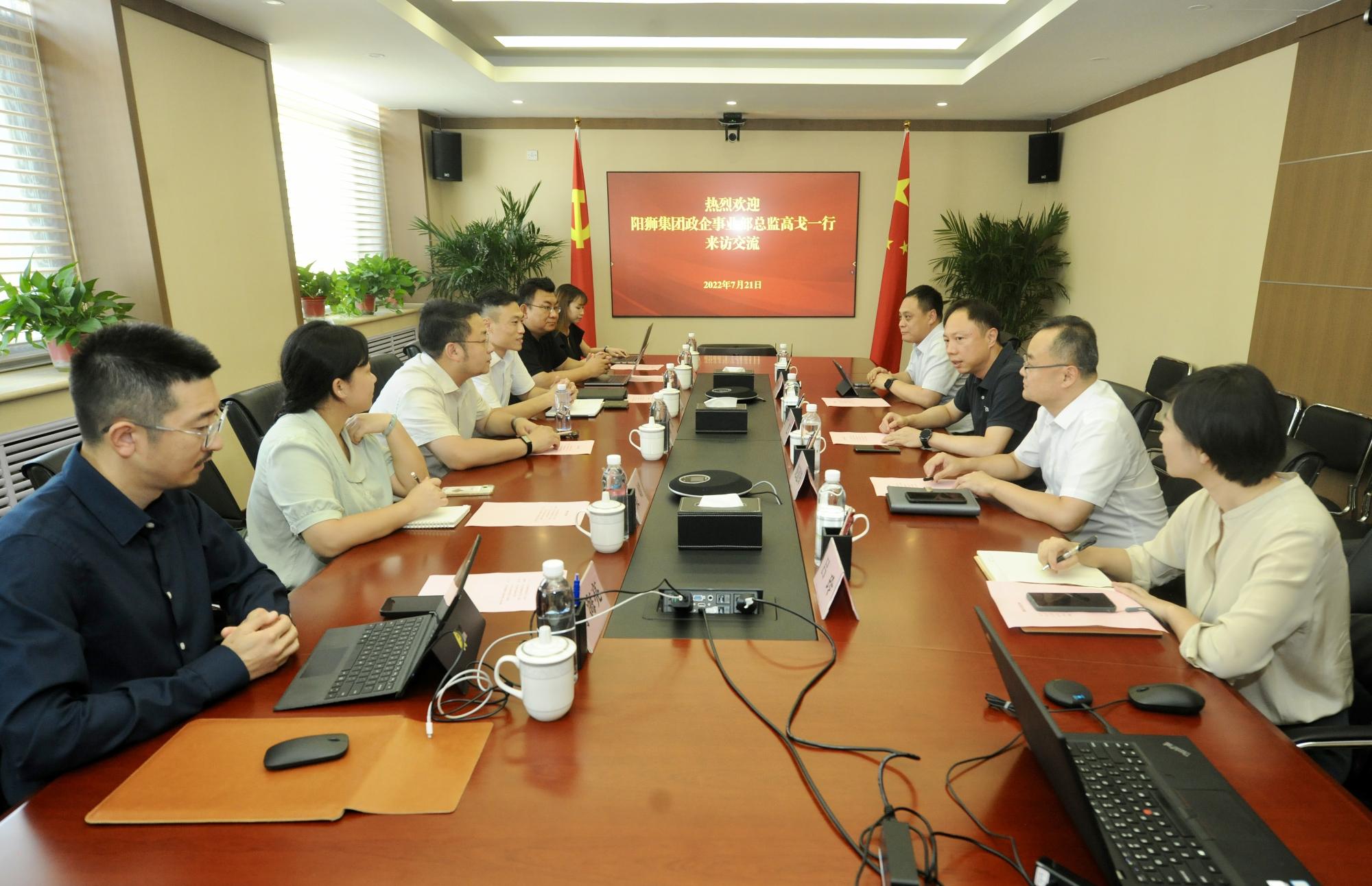 7月21日,陽獅集團(tuán)政企事業(yè)部總監(jiān)高戈一行到訪山東文旅集團(tuán),同山東文旅集團(tuán)黨委副書記、總經(jīng)理丁藝座談交流。