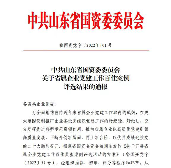 近日,山東省國資委黨委印發(fā)《關(guān)于省屬企業(yè)黨建工作百佳案例評選結(jié)果的通知》,公布省屬企業(yè)黨建工作百佳案例獲獎名單,山東文旅集團(tuán)基層黨建工作喜獲多項榮譽(yù)。