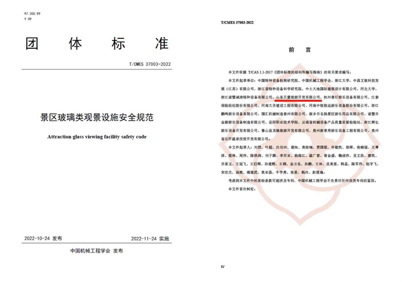 近日,山東文旅集團(tuán)旗下天蒙景區(qū)作為核心起草者制定的團(tuán)體標(biāo)準(zhǔn)T/CMES 37003-2022《景區(qū)玻璃類觀景設(shè)施安全規(guī)范》正式發(fā)布,這是我國首項(xiàng)涵蓋各類玻璃類觀景設(shè)施的安全標(biāo)準(zhǔn)。