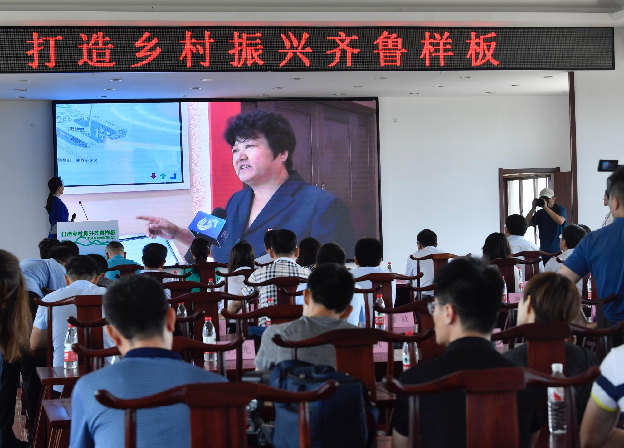 儀式現(xiàn)場,通過視頻直播連線了濟南市章丘區(qū)三澗溪村黨支部書記高淑貞、臨沂市蘭陵縣代村黨委書記王傳喜,共同分享打造鄉(xiāng)村振興齊魯樣板的經(jīng)驗,充滿互聯(lián)網(wǎng)思維的快手大V“山東萊蕪養(yǎng)蜂人”還介紹了他的創(chuàng)富經(jīng)驗。