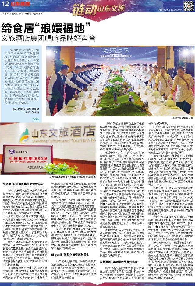 春回大地,萬物復(fù)蘇,我國酒店業(yè)也迎來了強(qiáng)勢回暖。作為山東文旅集團(tuán)旗下酒店業(yè)板塊運(yùn)營主體,山東文旅酒店管理集團(tuán)有限公司(簡稱“山東文旅酒店集團(tuán)”),旗下?lián)碛?00余家酒店。在2022年,積極克服疫情影響,共克時艱、逆勢求變,扎實(shí)推進(jìn)“四篇文章”,深入開展“雙招雙引”,實(shí)現(xiàn)文化旅游和酒店之間相互賦能,再次蟬聯(lián)中國飯店集團(tuán)60強(qiáng),規(guī)模位列第24位,以亮眼的“成績單”迎接新開局、新趨勢、新挑戰(zhàn)。