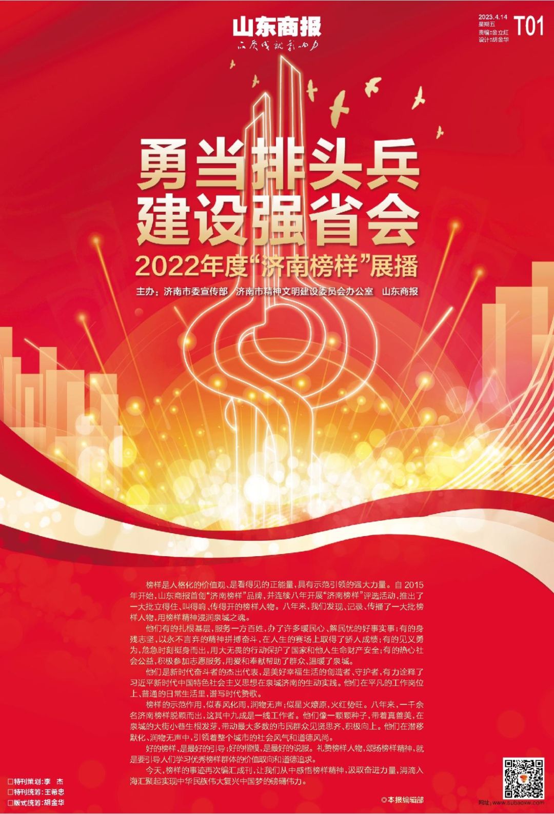 4月14日,山東文旅傳媒集團(tuán)旗下山東商報推出2022年度“濟(jì)南榜樣”特刊,百版展播“濟(jì)南榜樣”。