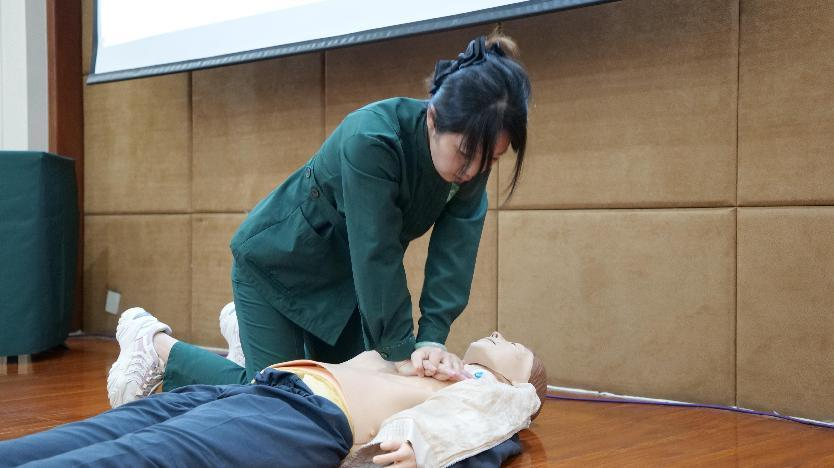 本次培訓(xùn)活動(dòng)邀請(qǐng)了山東省警官總醫(yī)院急診科醫(yī)護(hù)人員,采取“理論講解+實(shí)戰(zhàn)演示+實(shí)踐指導(dǎo)”相結(jié)合的模式,詳細(xì)教授割傷、扭傷、撞擊、食物中毒等應(yīng)急狀況的科學(xué)處理方式,科普各類(lèi)緊急情況的黃金救護(hù)時(shí)間,結(jié)合文旅從業(yè)人員工作場(chǎng)景實(shí)際,講解并演示心肺復(fù)蘇術(shù)、海姆立克急救法及除顫儀操作方法?,F(xiàn)場(chǎng)參訓(xùn)員工踴躍實(shí)踐,醫(yī)護(hù)人員耐心從旁指導(dǎo),逐個(gè)環(huán)節(jié)為參訓(xùn)人員糾正急救動(dòng)作,切實(shí)保障全體參訓(xùn)員工能熟練規(guī)范掌握培訓(xùn)內(nèi)容?;顒?dòng)還為員工提供了免費(fèi)血壓測(cè)量、血糖測(cè)試、超聲檢查等福利。