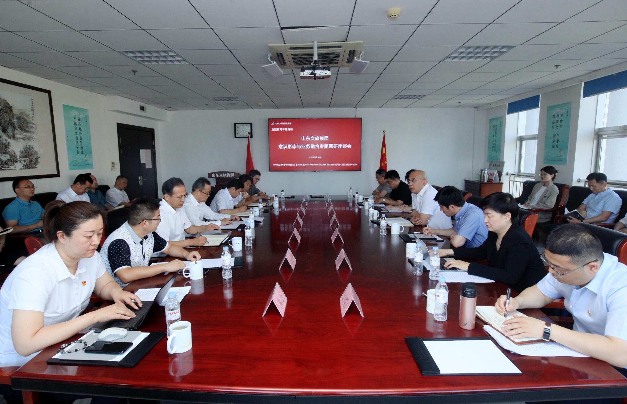 根據(jù)山東文旅集團(tuán)黨委主題教育工作部署,6月14日,集團(tuán)黨委委員、副總經(jīng)理孫超一行到山東文旅傳媒集團(tuán)進(jìn)行意識(shí)形態(tài)與業(yè)務(wù)融合工作專(zhuān)題調(diào)研,并召開(kāi)座談會(huì),深入調(diào)研了解各直屬企業(yè)意識(shí)形態(tài)工作情況,就意識(shí)形態(tài)工作進(jìn)行安排部署。