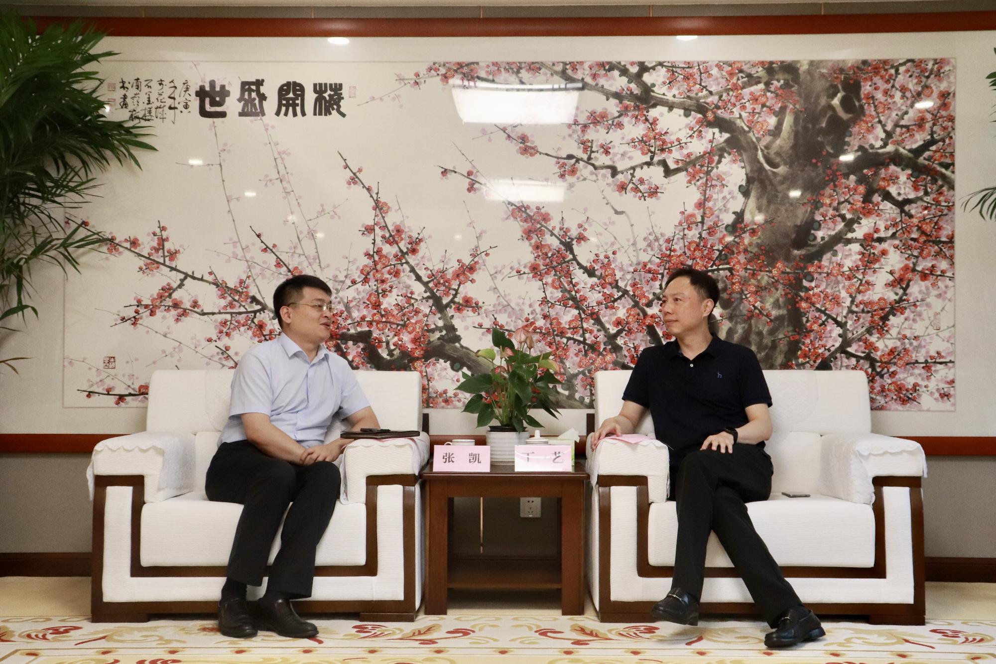 7月4日,臨沂文旅集團(tuán)黨委書記、董事長張凱一行到山東文旅集團(tuán)座談交流,集團(tuán)黨委副書記、總經(jīng)理丁藝會(huì)見。