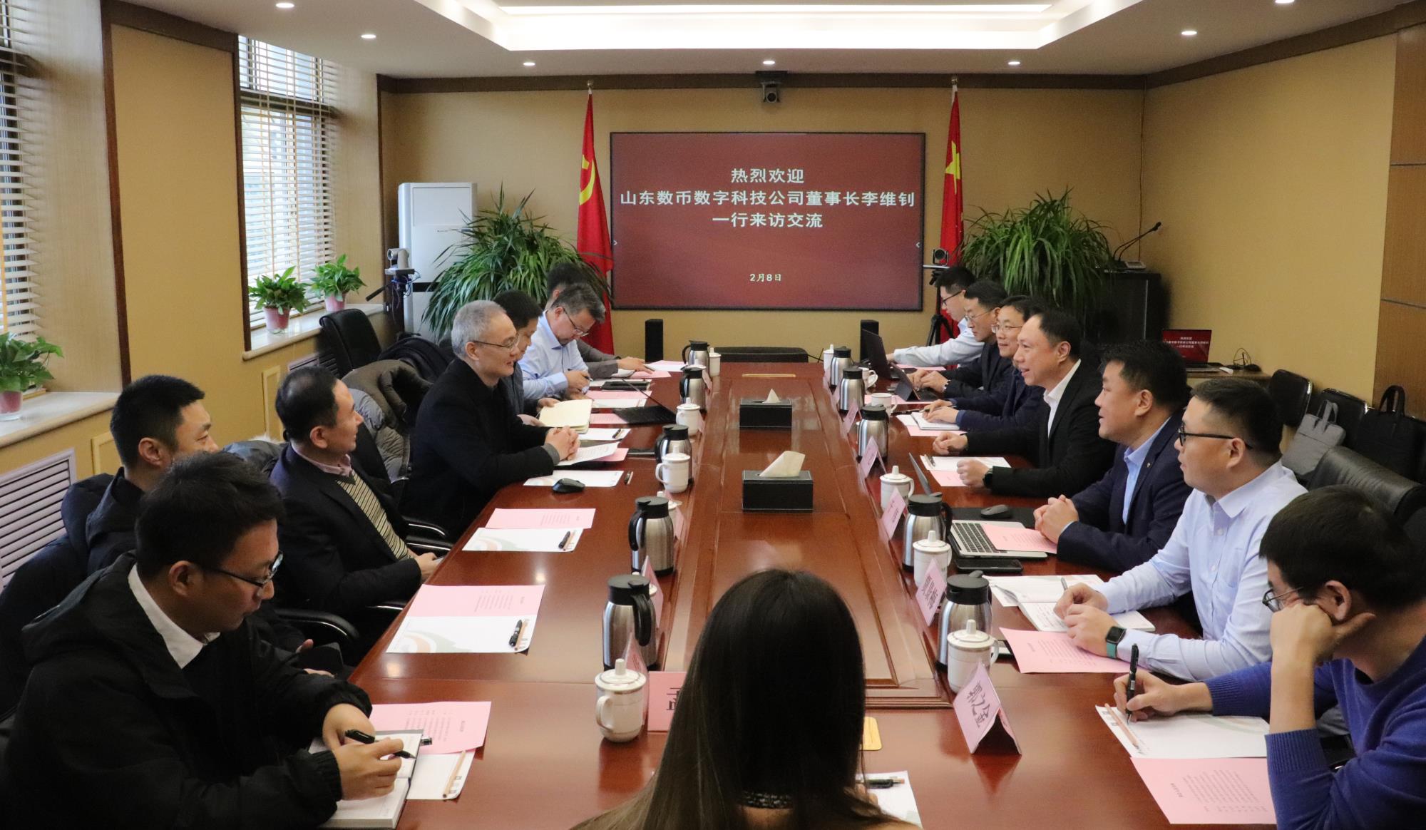 2月8日,山東數(shù)幣數(shù)字科技有限公司董事長(zhǎng)、北京千眼順風(fēng)科技有限公司執(zhí)行董事李維釗率隊(duì)到訪山東文旅集團(tuán),集團(tuán)黨委書記、董事長(zhǎng)丁藝會(huì)見。