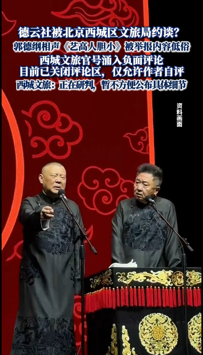 德云社被北京西城區(qū)文旅局約談?西城文旅官號涌入負(fù)面評論,西城文旅回應(yīng)