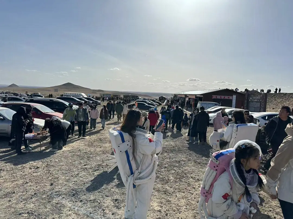 內(nèi)蒙古烏蘭察布草原火山景區(qū)未開(kāi)先火,假期期間推出了火山尋寶、宇航員體驗(yàn)等活動(dòng),游客可身著宇航服,漫步火山口,親身體驗(yàn)大自然的鬼斧神工,假期期間累計(jì)接待游客近2萬(wàn)余人次。