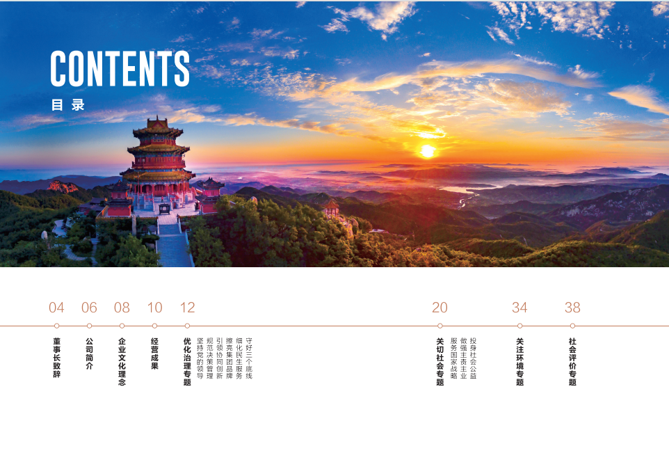 自2021年以來(lái),山東文旅集團(tuán)連續(xù)三年發(fā)布社會(huì)責(zé)任報(bào)告,自今年起,集團(tuán)將社會(huì)責(zé)任報(bào)告升級(jí)為環(huán)境、社會(huì)及治理(ESG)工作報(bào)告,從環(huán)境、社會(huì)、管治三個(gè)維度系統(tǒng)呈現(xiàn)集團(tuán)在履行環(huán)境承諾、承擔(dān)社會(huì)責(zé)任及加強(qiáng)內(nèi)部治理等方面的舉措,是集團(tuán)披露社會(huì)責(zé)任實(shí)踐相關(guān)信息的進(jìn)一步升級(jí),也是集團(tuán)走向更為市場(chǎng)化、現(xiàn)代化、國(guó)際化企業(yè)的積極探索。