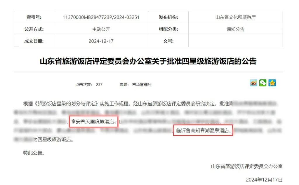 近日,山東省旅游飯店評定委員會(huì)公布了星級酒店民宿評定結(jié)果,山東文旅集團(tuán)旗下四家酒店獲星級評定,臨沂魯商知春湖溫泉酒店、泰安春天里度假酒店獲評四星級旅游飯店,天蒙·雋蘭民宿、山鄉(xiāng)宿集·7蘊(yùn)海景度假民宿獲評五星級旅游民宿。