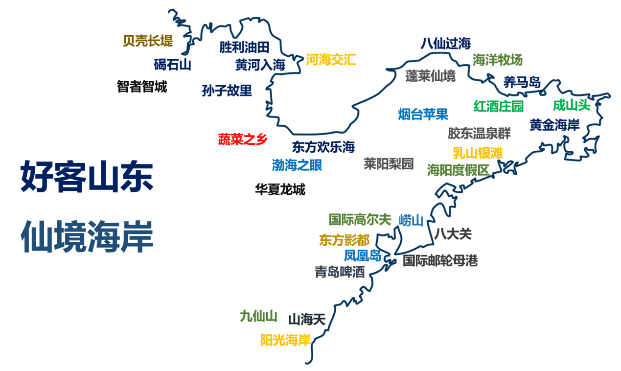 山東省海岸線占全國(guó)大陸海岸線的1/6,毗鄰海域面積15.95萬平方千米,涵蓋青島、煙臺(tái)、威海、日照、濰坊、東營(yíng)、濱州7市海濱區(qū)域范圍,沿線有非常豐富的旅游資源,“仙境海岸”文化旅游目的地品牌在國(guó)內(nèi)國(guó)際具有廣泛的知名度和影響力。