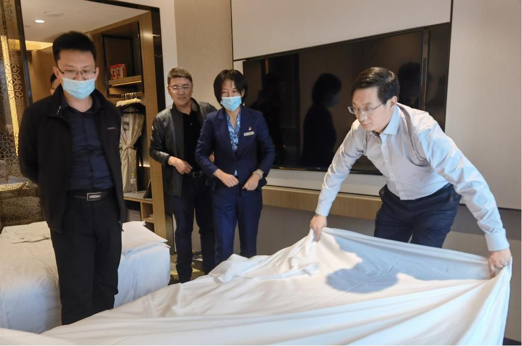 二支部在泉城大酒店參觀酒店實(shí)施5S精細(xì)化管理的工作場(chǎng)景,詳細(xì)了解廚房、客房、設(shè)備間、員工餐廳等不同崗位的工作流程,經(jīng)過簡(jiǎn)短的崗前培訓(xùn),支部成員分別到客房、餐廳參加打掃客房、餐具擺臺(tái)等服務(wù)項(xiàng)目。