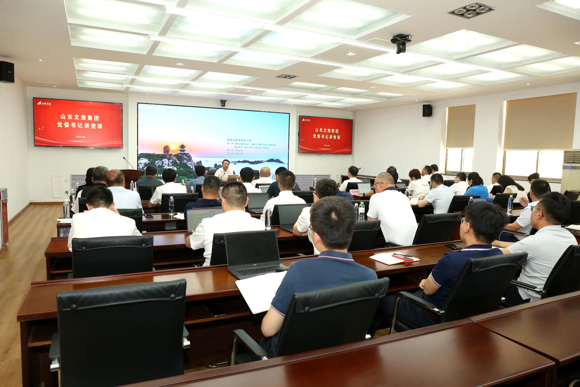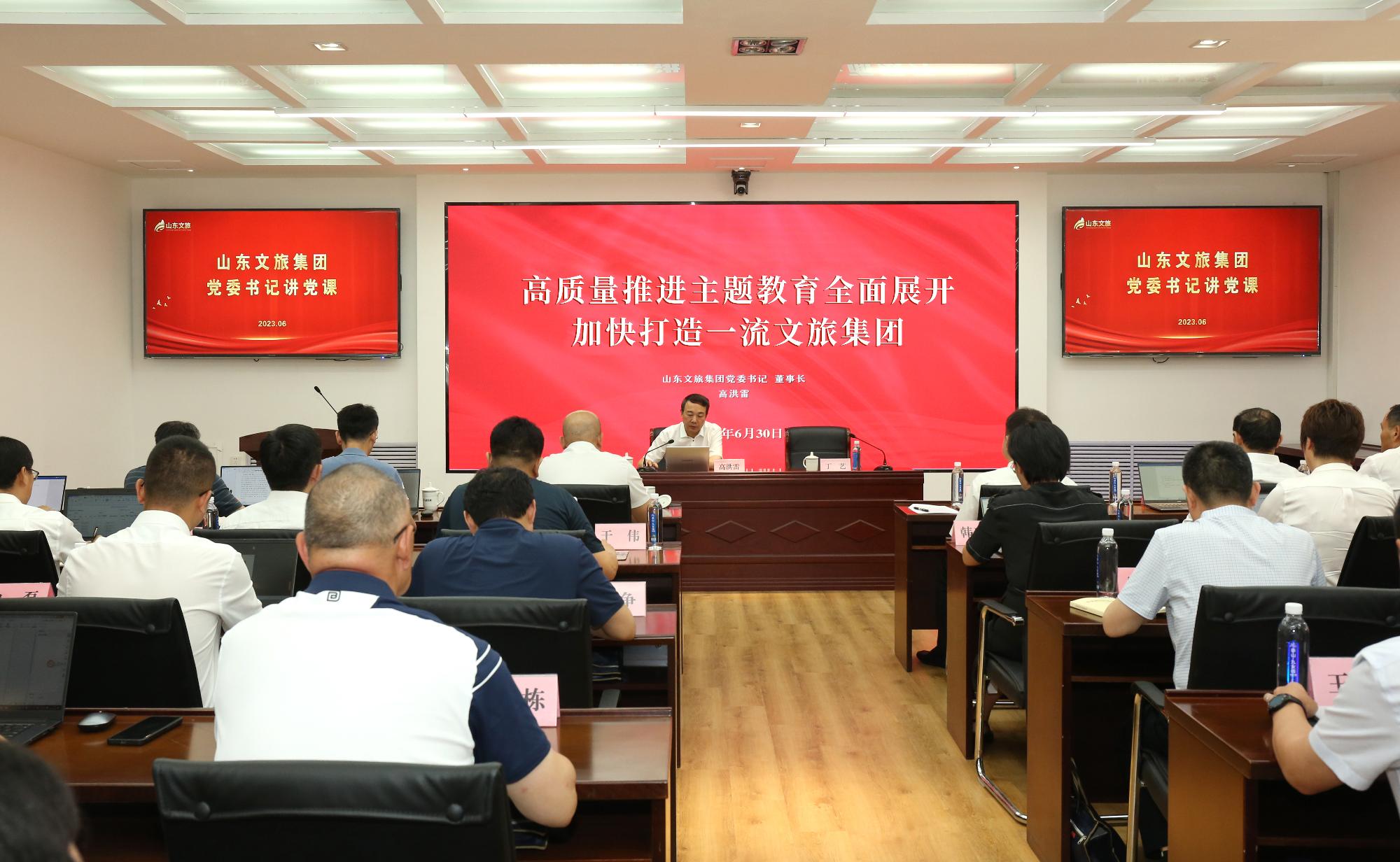 為扎實推進學習貫徹習近平新時代中國特色社會主義思想主題教育,6月30日,集團黨委書記、董事長高洪雷以“高質量推進主題教育全面展開 加快打造一流文旅集團”為主題,在集團黨委主題教育讀書班上作專題黨課,集團黨委副書記、總經理丁藝主持。