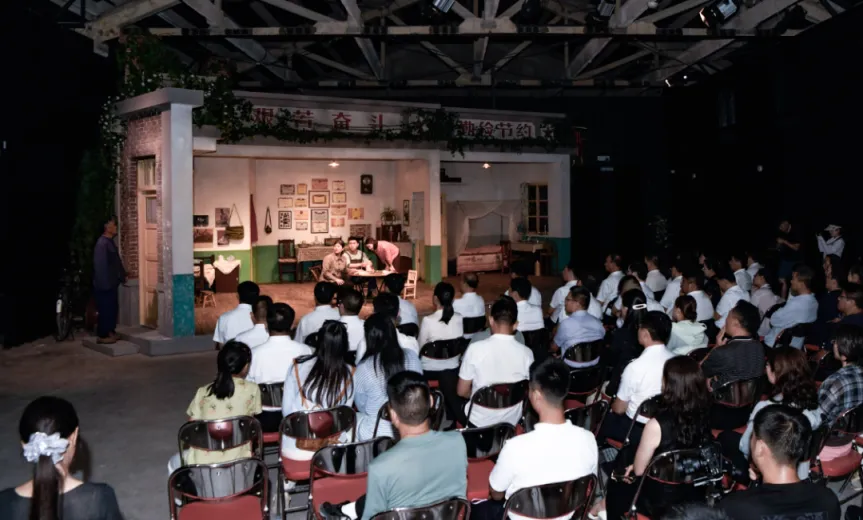 園區(qū)重點打造了三大沉浸式文化空間。一是紅色記憶傳承空間,以山東小三線紀念館為核心,通過豐富的實物史料展示和活字印刷術沉浸式體驗,生動詮釋“艱苦創(chuàng)業(yè)、無私奉獻”的三線精神;二是沉浸式體驗空間,由車間改造的劇場常態(tài)化上演《半斤糧票》等沉浸式互動劇目,搭配打造的復古懷舊商業(yè)街及“憶苦思甜”主題的東方紅大飯店、大禮堂年代劇等共同形成全流程懷舊體驗場景;三是復合服務空間,將昔日廠房改建為“鉛華書房”,老宿舍樓改造為懷舊客房,配套年代記憶公園、研學教室等設施,提供閱讀、休憩、研學培訓等多元化服務。