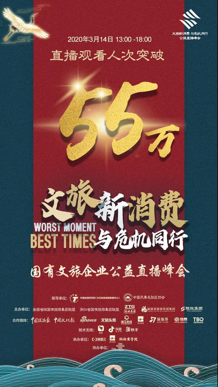 本次峰會(huì)由中國(guó)旅游研究院、中國(guó)風(fēng)景名勝區(qū)協(xié)會(huì)指導(dǎo),浙江省旅游集團(tuán)、福建省旅發(fā)集團(tuán)、陜西旅游集團(tuán)聯(lián)合全國(guó)省級(jí)國(guó)有旅游集團(tuán)聯(lián)盟、浙江省國(guó)有旅游集團(tuán)聯(lián)盟共同舉辦。通過釘釘、阿里云、淘寶大學(xué)云課堂、今日頭條、文旅新零售在線課堂、浙江藍(lán)TV、目睹直播、浙旅商學(xué)院等35個(gè)平臺(tái)在線直播,共55.1萬人次觀看直播。