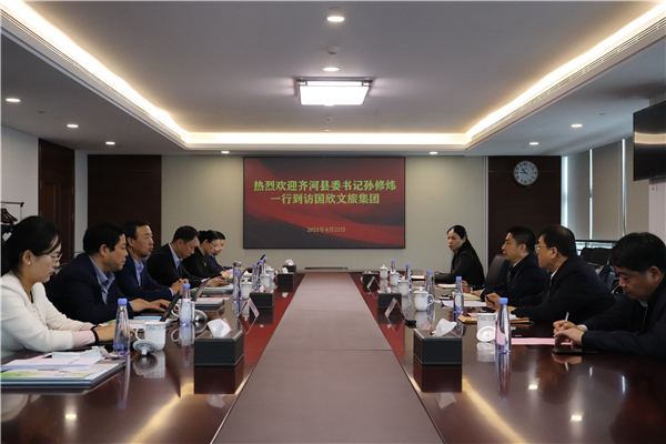 4月22日上午,魯商集團(tuán)黨委書記、董事長兼山東省國欣文化旅游發(fā)展集團(tuán)有限公司(簡稱“國欣文旅”)黨委書記、董事長高洪雷與到訪的德州市齊河縣委書記孫修煒一行座談交流。國欣文旅黨委副書記、總經(jīng)理丁藝參加。