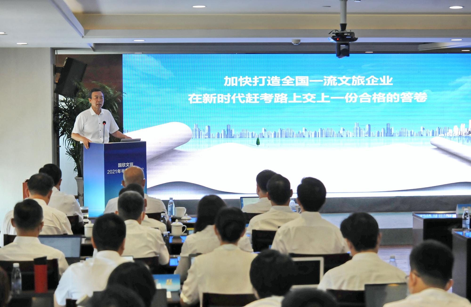 7月19日,山東省國欣文化旅游發(fā)展集團有限公司(簡稱“國欣文旅”或“集團”)2021年上半年經(jīng)濟工作會議召開。魯商集團黨委書記、董事長兼國欣文旅黨委書記、董事長高洪雷作了題為《夯實基礎(chǔ) 爭先進位 加快打造全國一流文旅企業(yè)》的講話,分析了集團上半年經(jīng)濟運行情況,研判了當前形勢,對下半年工作進行了部署。國欣文旅黨委副書記、總經(jīng)理丁藝主持會議。集團全體領(lǐng)導(dǎo)班子成員出席會議。